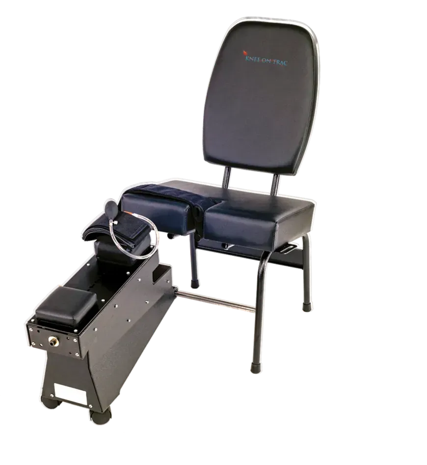 Knee traction therapy decompresses the joint space, stretching the tissues and allowing more blood flow to the supportive ligaments and tendons of the knee joint.